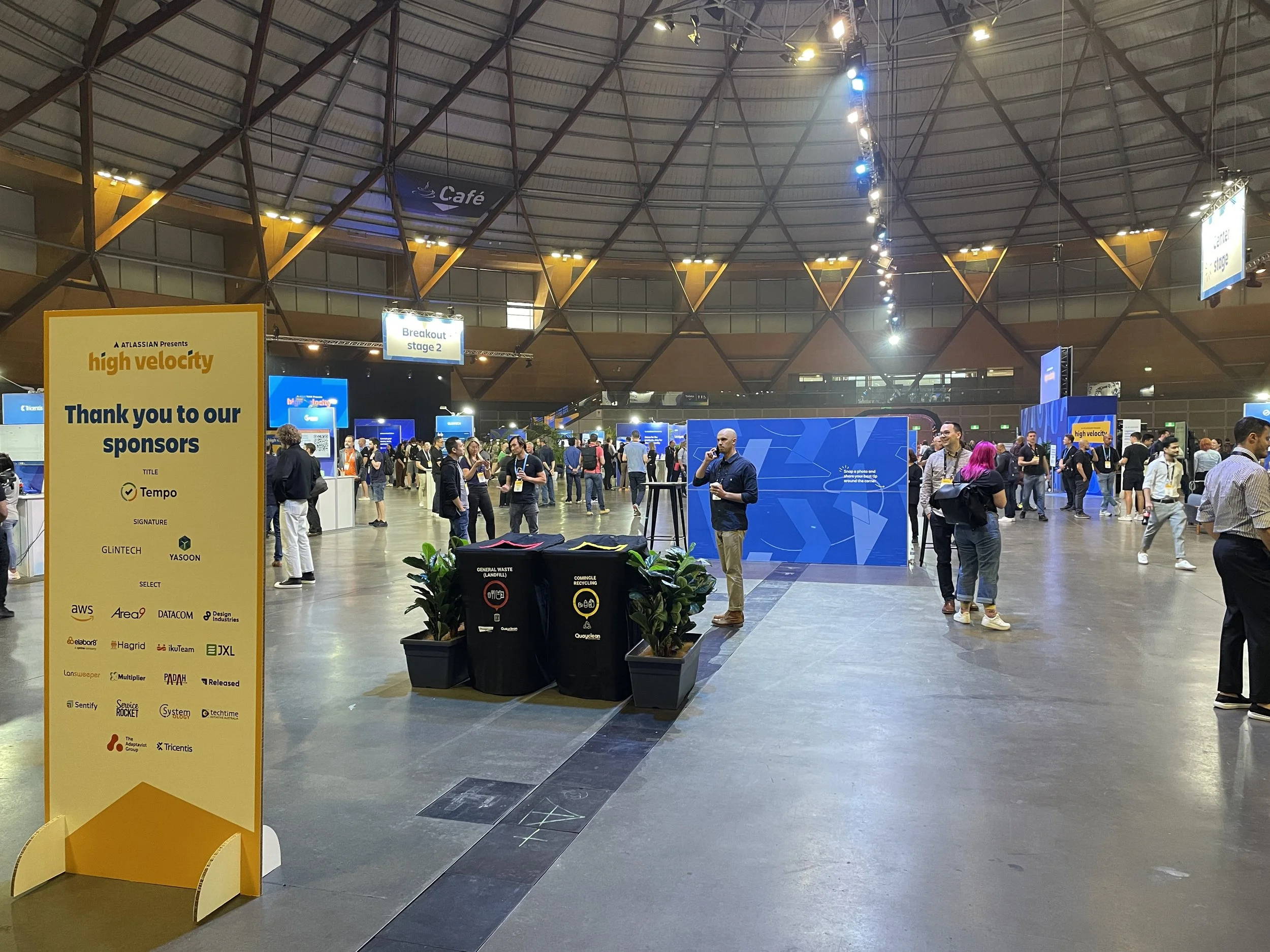 PCC was very proud to work on the Atlassian High Velocity event that was hosted in Sydney Olympic Parks, The Dome. High Velocity is an annual event that connects peers, offers hands-on training, and a showcase of guest speakers. We provided a solid internet background to service all of the stages, demonstration booths, training areas, and internet for everyone toiling away behind the black velvet drapes. We also ate ice cream cake 2 nights in a row. Not too shabby.